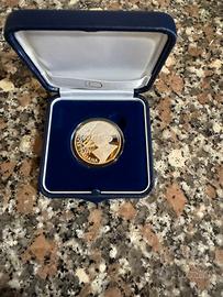 La moneta da 10 euro in argento Fondo Specchio rappresenta il ritratto di Colombo da un dipinto del Ghirlandaio custodito al Galata Museo del Mare di Genova. Sul retro invece sono raffigurate le 3 caravelle dorate durante la circumnavigazione del mondo. ritratto di Cristoforo Colombo, da un dipinto attribuito a Ridolfo Bigordi del Ghirlandaio, custodito al Galata Museo del Mare di Genova. In secondo piano, un quadrante dorato, strumento utilizzato per misurare l’altezza angolare di un corpo celeste rispetto alla linea dell’orizzonte. A sinistra, la scritta “REPUBBLICA ITALIANA”; sul lato destro, il nome dell’autore “U. PERNAZZA”. Rovescio: le tre caravelle dorate in navigazione intorno al mondo ispirate ad una stampa di Gustav Adolf Closs del 1892; all’interno del globo terrestre è rappresentato il percorso del primo viaggio di Colombo. In alto, la scritta “CRISTOFORO COLOMBO” e il valore “10 EURO”; nel campo di destra “R”, identificativo della Zecca di Roma; nel campo di sinistra l’anno di emissione “2019”. 20240920e230