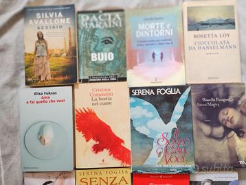 set di 11 volumi di autrici italiane. 1) La bestia nel cuore di Cristina Comencini. 2) Cioccolata da Hanselmann di Rosetta Loy. 3) Morte e dintorni di Fiorella Rustici. 4) Nessuno può volare di Simonetta Agnello Hornby. 5) Ama e fai quello che vuoi di Elisa Fuksas. 6) Anima magica di Rossella Panigalli. 7) Un amore rosa shokking di Rossella Canevari. 8) Senza cipria di Serena Foglia. 9) Il sogno e le sue voci di Serena Foglia. 10) Acciaio di Silvia Avallone. 11) Buio di Dacia Maraini. lingua italiano. tutti i libri sono in ottimo stato. scrivere per ulteriori informazioni sui singoli volumi. un libro 3€. dai tre in su 2€ a volume e L'inganno di Minerva di Letizia Giangualano in omaggio.