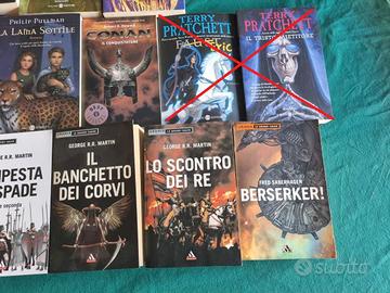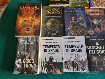 Ad e. 44,00 vendo, in blocco, i seguenti 11 romanzi di genere fantasy: -George R.R. Martin - Il gioco del trono -George R.R. Martin - Lo scontro dei re -George R.R. Martin - Tempesta di spade (parte prima) -George R.R. Martin - Tempesta di spade (parte seconda) -George R.R. Martin - Il banchetto dei corvi -Robert E. Howard - Conan il conquistatore -Terry Brooks - A volte la magia funziona -Philip Pullman - La lama sottile -Fred Saberhagen - Berserker! -C.S. Lewis - Le cronache di Narnia (contiene i romanzi: Il nipote del mago; Il leone, la strega, l'armadio; Il cavallo e il ragazzo; Il principe Caspian; Il viaggio del veliero; La sedia d'argento; L'ultima battaglia) -Bernhard Henne - Gli Elfi