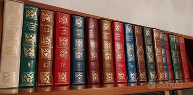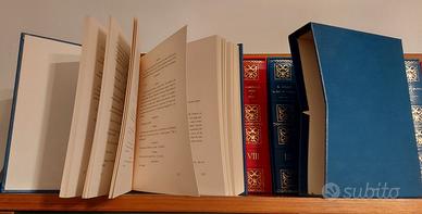 Copertina rigida simil pelle con fregi in oro, rilegatura cartonata. Volumi in cofanetto.
