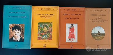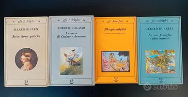 18 volumi Adelphi collana Gli Adelphi: Bhagavadgita a cura di Anne-Marie Esnoul - Joseph Roth, Giobbe, La Cripta dei Cappuccini - Satta Salvatore, Il giorno del giudizio - Gerald Durrel, La mia famiglia e altri animali - Mordecai Richler, La versione di Barney - Milan Kundera, La vita è altrove, L'immortalità, Lo scherzo - Konrad Lorenz, L'anello di re Salomone - Frank McCourt, Le ceneri di Angela - Georges Simenon, Le memorie di Maigret, Maigret si diverte - Roberto Calasso, Le nozze di Cadmo e Armonia - Robert Pirsig Robert, Lo Zen e l'arte della manutenzione della motocicletta - Oliver Sacks, L'uomo che scambiò sua moglie per un cappello - Karen Blixen, Sette storie gotiche - Jaques Bacot a cura di, Vita di Milarepa. I suoi delitti, le sue prove, la sua liberazione. Tutti in buone condizioni. Peso della confezioni 6 kg.