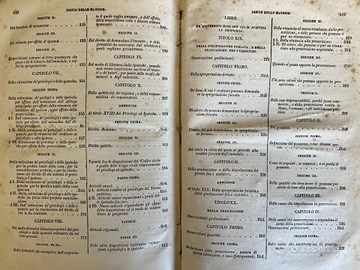 Rilegatura coeva in mezza pelle con titoli e fregi in oro al dorso, pag. 420, testo su due colonne
