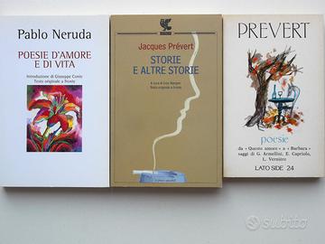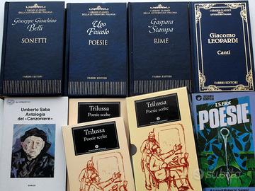 Contattatemi per scegliere libro/i che preferite ---------- 1 LIBRO 3 EURO ---------- -- SAFFO - poesie -- GUIDACCI - l'altare di Isenheim -- NERUDA - poesie d'amore e di vita -- PREVERT - poesie -- PREVERT - storie e altre storie -- BAUDELAIRE - i fiori del male -- BUZZATI - le poesie -- MONTALE - ossi di seppia -- MONTALE - poesie -- GIACOMO LEOPARDI - canti -- GASPARA STAMPA - rime -- PETRARCA - il Canzoniere -- GIOACHINO BELLI - sonetti -- T. S. ELIOT - poesie -- I SALMI -- UMBERTO SABA - antologia del Canzoniere -- UGO FOSCOLO - poesie -- TRILUSSA - poesie 1 (in cofanetto) -- TRILUSSA - poesie 2 (in cofanetto) Oscar Classici Mondadori - BUR Rizzoli - Biblioteca Moderna Mondadori - Fabbri Editori - I grandi libri Garzanti - Tascabili Bompiani - Neri Pozza - Guanda