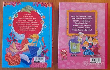 2 LIBRI PER BAMBINI nuovi MAGICHE SIRENE: Viola, Miranda e Luna hanno 9 anni, vivono in un piccolo paese affacciato sul mare e sono amiche fin dai tempi dell’asilo. Amano nuotare e cercare i tesori lasciati dalle onde sulla sabbia. Quando un giorno ricevono in dono dal loro amico Grim uno straordinario incantesimo che permette loro di trasformarsi in sirene, inizieranno a vivere incredibili avventure sottomarine! Autore: Rosalba Troiano Illustratore: Miriam Gambino Editore: Giunti Editore Pagine:192 p., ill. , Rilegato Età di lettura: Da 7 anni PICCOLE PRINCIPESSE: Lunetta ha 6 anni, ama leggere e disegnare, è saggia e prudente. Drusilla ha 5 anni, adora i vestiti e i giri sull'altalena ed è una grande sognatrice. Amarilla ha 5 anni, ama le avventure ed è vivace e curiosa. Lunetta, Drusilla e Amarilla sono sorelle e, soprattutto sono tre... piccole principesse! Seguile nelle loro spassosissime avventure fuori e dentro il castello: ne accadranno delle belle! Il libro, dedicato a tutte le bambine che amano sognare, contiene anche consigli, idee, giochi e attività... da vere principesse! Autore: Bianca Belardinelli Illustratore: Gustavo Mazali Editore: Dami Editore Collana: I libri per le bambine Pagine: 256 p., ill. , Rilegato Età di lettura: Da 5 anni