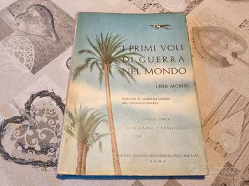 Due libri molto interessanti dedicati alla storia dell'aviazione italiana, in ottime condizioni. 1) "Cieli del Mondo - Avventure aeronautiche italiane narrate dai protagonisti", a cura di Gianni Guadalupi. Editore: Anabasi, prima edizione 1994, pagine 348, copertina cartonata. Volume ben tenuto, senza scritte né sottolineature. 2) "I primi voli di guerra nel mondo. Libia - MCMXI", edizione in quattro lingue nel cinquantenario, Parte Terza (italiano–spagnolo). Edito dall'Ufficio Storico dell'Aeronautica Militare, Roma 1961, pagine 238. Leggera segnatura lungo il dorso, nel complesso conservato molto bene, ideale per collezionisti o appassionati di storia militare dell'aviazione. Vendita dei due volumi insieme.