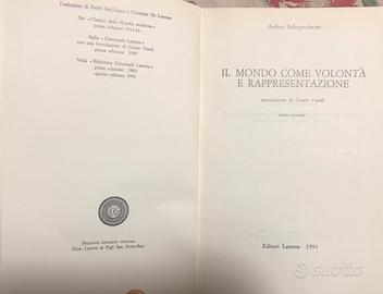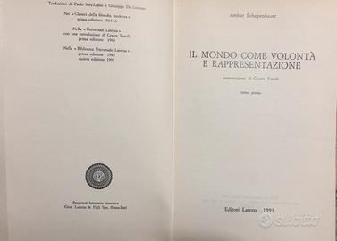 Vendo 2 volumi dal titolo Il mondo come volontà e rappresentazione di Schopenhauer, edizioni Laterza, 1991. Solo interessati. Consegna a mano a Cuneo e paesi limitrofi, Vinovi zona ippodromo, Genova centro. Grazie.