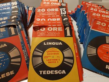 Vendo 3 serie 20 ORE corsi a dispense di lingue straniere Unico mancante n 18 lingua tedesco, le altre complete da 1 a 53. Compreso nel pacco n 21 di francese Alcuni dischi ancora impacchettati.
