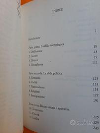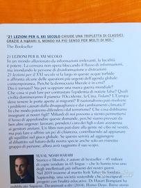 21 lezioni per il XXI Secolo . Yuval Nohah Harari Bompiani 978-88-301-0082-4 Libro in lingua italiana #attualità #book #livre Costo Copertina 17€ Genere: saggio storico, sociologico 👉Per ulteriori informazioni e foto non esitare a contattarmi🌟 In un mondo alluvionato da informazioni irrilevanti, la lucidità è potere. La censura non opera bloccando il flusso di informazioni, ma inondando le persone di disinformazione e distrazioni. 21 lezioni per il XXI secolo si fa largo in queste acque torbide e affronta alcune delle questioni più urgenti dell'agenda globale contemporanea. Perché la democrazia liberale è in crisi? Dio è tornato? Sta per scoppiare una nuova guerra mondiale? Che cosa significa l'ascesa di Donald Trump? Che cosa si può fare per contrastare l'epidemia di notizie false? Quali civiltà domineranno il pianeta: l'Occidente, la Cina, l'islam? L'Europa deve tenere le porte aperte ai migranti? Il nazionalismo può risolvere i problemi causati dalla disuguaglianza e dai cambiamenti climatici? In che modo potremo difenderci dal terrorismo? Che cosa dobbiamo insegnare ai nostri figli? Miliardi di noi possono a stento permettersi il lusso di approfondire queste domande, perché siamo pressati da ben altre urgenze: lavorare, prenderci cura dei figli o dare assistenza ai genitori anziani. Purtroppo la storia non fa sconti. Se il futuro dell'umanità viene deciso in vostra assenza, poiché siete troppo occupati a dar da mangiare e a vestire i vostri figli, voi e loro ne subirete comunque le conseguenze. Certo è parecchio ingiusto; ma chi ha mai detto che la storia è giusta? Un libro non può dare alla gente né cibo né vestiti, ma può fare e offrire un po' di chiarezza, contribuendo ad appianare le differenze nel gioco globale. Se questo libro servirà ad aggiungere al dibattito sul futuro della nostra specie anche solo un ristretto gruppo di persone, allora avrà raggiunto il suo scopo.