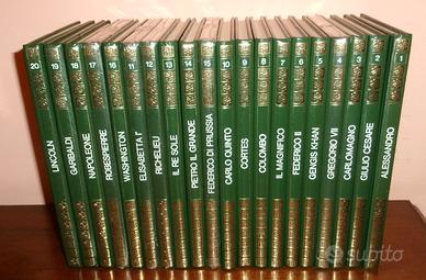 3) "I grandi personaggi della Storia", Arnoldo Mondadori Editore (1971), 20 volumi, pagine oltre 120 cadauno, formato 16 cm. x 23,4 cm. x 1,4 cm., peso 550 gr. cadauno , rilegati, copertina in similpelle con scritte in oro.