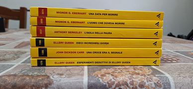 3 gialli Mondadori + 3 Classici del giallo Mondadori: 1. Mignon G. Eberhart – Una data per morire 2. Mignon G. Eberhart – L'uomo che doveva morire 3. Anthony Berkeley – L'isola della paura 4. Ellery Queen – Dieci incredibili giorni 5. John Dickson Carr – Una croce era il segnale 6. Ellery Queen – Esperimenti deduttivi di Ellery Queen Possibilità di sconti per acquisti multipli.