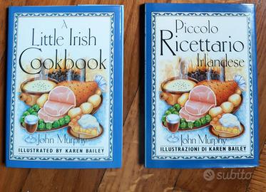 Tre libri di ricette irlandesi riccamente illustrati, ideali anche per studenti di lingue, oltre che per appassionati di cucina. Uno in inglese, in formato 24 x 26; gli altri due, uno in inglese e l'altro in italiano, sono in formato tascabile, esattamente identici per ricette, illustrazioni (meravigliose) e numerazione pagine: