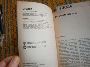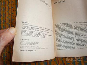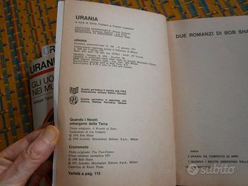 3 libri Urania : a) n. 654 - L'abitatore - Kenneth F. Gantz - Ed. Mondadori- b)Gli uomini nei muri di William Tenn - Urania n. 521 (I Romanzi) ed. Mondadori-Urania 740 - c) Bob Shaw : 1)Quando I Neutri Emergono Dalla Terra - 2) Cronomoto 1971