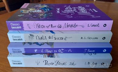 4 LIBRI Classici Giunti NUOVI -IL MAGO DI OZ Frank L. Baum -PICCOLE DONNE Louisa May Alcott -L'ISOLA DEL TESORO Robert Luis Stevenson -ALICE NEL PAESE DELLE MERAVIGLIE Lewis Carrol