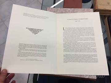 1) Ricettario fiorentino 1498-1789. E' un grosso volume con copertina cartonata, credo mai sfogliato, stampato nel 1994 in edizione limitata di 1000 esemplari. Questo è il n. 42. Contiene le ricette medicinali farmaceutiche ed è una ristampa anastatica del volume originale curata dalla Documento Editoriale SRL e stampata a Verona dalla stamperia Valdonega.