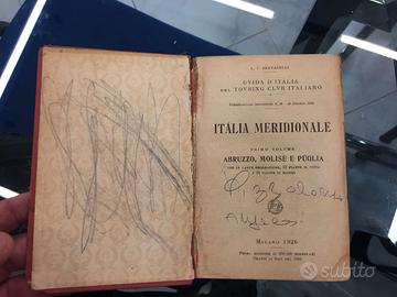 3) Guida D'Italia del Touring Club Italiano a cura di L. V. Bertarelli. Milano 1926. Italia Meridionale Vol. I Abruzzo Molise Puglia. Libro popolare, in cattive condizioni causa scritte e strappi vari, può essere utile per recuperare le belle cartine inserite.