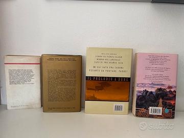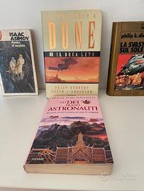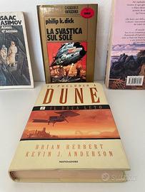 Abissi d’acciaio di Asimov In totale 204 pagine Rilegatura: copertina morbida, con illustrazione di Oscar Chiconi Edizioni classici di Urania del 1977 La svastica sul sole di Philip K. Dick In totale 266 pagine Rilegatura: copertina rigida, sovracopertina con illustrazione Editrice Nord, collana “Cosmo oro” 1983. Brossura. Il preludio a Dune- 2 il duca Leto di Brian Herbert e Kevin Anderson In totale 240 pagine Rilegatura: copertina rigida, sovracopertina con illustrazione di Franco Brambilla Edizioni Mondadori 2002 Gli dei erano astronauti è un saggio dello scrittore svizzero Erich von Däniken In totale 250 pagine Rilegatura: copertina morbida, sovracopertina con illustrazione Edizioni Piemme del 2003 Tutti i libri provengono da collezione privata, le pagine risultano imbrunite dal tempo. All'interno in ottime condizioni. Per gli appassionati del genere.
