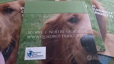 Quadrotti e Rigotti: 4 quaderni a righe (R1) e 1 a quadretti (Q2) specifici per persone affette da deficit visivi (ad esempio ipovedenti o maculopatie) con righe ad alto contrasto (non in rilievo).