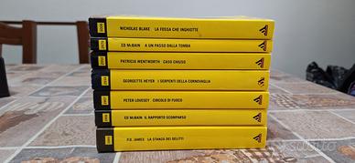 7 Gialli Mondadori d'annata: 1. Nicholas Blake – La fossa che inghiotte 2. Ed McBain – A un passo dalla tomba 3. Patricia Wentworth – Caso chiuso 4. Georgette Heyer – I serpenti della Cornovaglia 5. Peter Lovesey – Circolo di fuoco 6. Ed McBain – Il rapporto scomparso 7. P.D. James – La stanza dei delitti Possibilità di sconti per acquisti multipli.