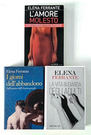 In questo annuncio dedicato alle edizioni e/o in foto vendo anche singolarmente: A euro 6 l’uno di Elena Ferrante “La vita bugiarda degli adulti” (pari al nuovo) “L’amica geniale” (vol.1) (pari al nuovo) “Storia della bambina perduta” (L’amica geniale vol.4) A euro 3,50 l’uno: Elena Ferrante “I giorni dell’abbandono” e “L’amore molesto” A euro 3: Edna O’Brien “La ragazza dagli occhi verdi” A euro 2 : Christa Wolf "Cassandra" Sì effettuano spedizioni con piego di libri ogni giovedì Piego di libri ordinario - di default - (non tracciato) 2,50€ Piego di libri raccomandato (tracciato) 6€ Si accetta paypal o bonifico non è possibile utilizzare tuttosubito per motivi organizzativi Consegna a mano a Senago (MI) Per ogni acquisto e’ obbligatorio premere esclusivamente il tasto “contatta il venditore” Vendo più di 1200 romanzi! Sfoglia i miei annunci!