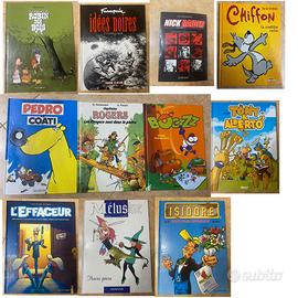 AFFARE IMPERDIBILE – 70 FUMETTI (64 cartonati + 6 brossurati) in condizioni eccellenti: quasi tutti come nuovi, mai sfogliati. Solo 4‑5 con lievi segni del tempo. PREZZO INCREDIBILE: - di 1,5 € A VOLUME! Occasione perfetta per collezionisti, appassionati, studenti di fumetto o chi vuole creare un archivio di qualità. Lingue: 65 francesi, 4 inglesi, 1 spagnolo. LINGUA FRANCESE: MIDAM – Kid Paddle 1‑11 (Dupuis, cartonati), 12‑14 (Mad Fabrik, cartonati); Sors Tes Griffes Pour Ta Planete (cartonato); Mission Ile Maurice (cartonato). TEBO – Samson et Neon 1‑7 (cartonati); SketchBook (brossurato). Zep & Tebo – Captain Biceps 1‑6 (cartonati); Comment dessiner? (brossurato) - Raowl 1-2. ZEP – Titeuf 5‑8 (cartonati). Tome & Janry – Le Petit Spirou 9‑11 (cartonati). ENRIQUE FERNANDEZ – Magicien d’OZ 1‑3 (cartonati); Cobra 1‑2 (cartonati); Aurore (cartonato); L’Ile Sans Sourire (cartonato); La Mere des Victoires (cartonato). TRONDHEIM & PARME – Venezia 1‑2 (cartonati). LARCENET – La Legende de Robin Des Bois (cartonato). FRANQUIN – Idees Noires – Integrale (cartonato). NIZZI & MASTANTUONO – Nick Raider: Section Criminelle (brossurato, 360 pp). GILBERT – Chiffon 1 (cartonato). GAUDELETTE & LARCENET – Pedro Le Coati 1 (cartonato). NOB – Bogzzz 1 (cartonato). CAVAZZANO & PEZZIN – Capitaine Rogers 1 (cartonato). DAB'S – Tony & Alberto 1 (cartonato). JENFEVRE & RICHEZ – L’Effaceur 1 (cartonato). OLIS & GILSON – Garage Isidore 6 (cartonato). CLARKE & GILSON – Melusine 7 (cartonato). MORDILLO - Opuse 3-4 (Glenat, cartonati). LINGUA INGLESE: Wallace Wood – The Wizard King: King of the World (brossurato); Odkin Son of Odkin (brossurato). MIKE KUNKEL – HeroBear and the Kid (cartonato); The Land of Sokmunster (cartonato). LINGUA SPAGNOLA: IBANEZ – Mortadelo y Filemon 15 (brossurato). ILLUSTRATI FRANCESI: GUICHON & PILLOT – Le Noel d’Edmond (cartonato). PICOULY & PILLOT – Lulu et le Cheval qui Danse (cartonato). Consegna: a mano a San Cesareo (RM) o spedizione 24/48h. No perditempo