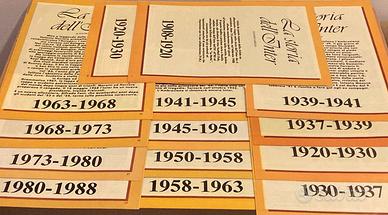1908-1920, 1920-1930 prima parte, 1920-1930 seconda parte, 1930-1937, 1937-1939, 1939-1941, 1941-1945, 1945-1950, 1950-1958, 1958-1963, 1963-1968, 1968-1973, 1973-1980, 1980-1988.