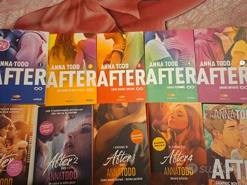 Vendo come da titolo l'intera saga letteraria AFTER di ANNA TODD. La saga comprende i 5 libri (versione italiana) in versione originale (la prima uscita con la vecchia scritta), le ristampe con le locandine dei film e i contenuti speciali, la graphic novel, la via di mezzo NOTTHING MORE e LESS (che parla di Landon) e BEFORE (che parla dei vari personaggi prim di AFTER). Vendo l'intera saga al prezzo di 200,00€ trattabili