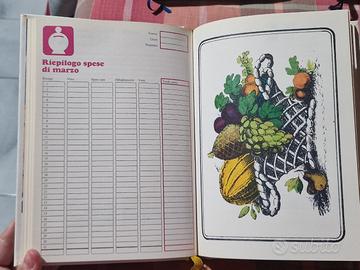 presenta pagine di calendario, riepilogo spese del mese e ricette