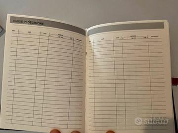 diario professionale, fino al 31 marzo 2027 (15 mesi); calendari 2026 e 2027; promemoria mensile scadenza atti; rinvii; pratiche in attesa; cause in decisione; decreti ingiuntivi; rubrica delle pratiche; cause civili; cause penali; cause amministrative; tariffe forensi. È arricchita da 365 aforismi, uno per ogni giorno, nonché dal codice di procedura civile.