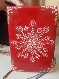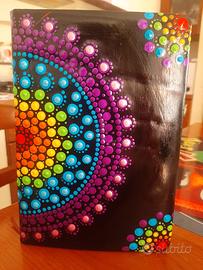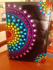 Nuova. Interno a righe dove selezionare la data, il giorno e il mese. Le copertine sono dipinte con la tecnica del puntinismo tramite colori acrilici