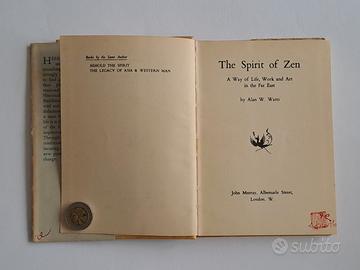 Alan W. Watts, “The Spirit of Zen: a way of life, work and art in the Far East”. Seconda edizione, cartonato, pubblicato nel 1955 da John Murray, London, 1955. A parte un paio di note scritte in matita e un piccola scritta a penna è in condizioni molto buone.