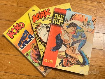 Fumetti vecchie edizioni a scelta per un pezzo euro 3, per più pezzi euro 2 cad.: OKLAHOMA N.1 DAKOTA N.1 BAD MOON N.1 LEGS WEAVER N.1 KERRY KROSS N.1 FULL MOON N.1 ESP N.2 KIRK WESTERN N.3 ELTON COP N.1 EUREKA FLASH N.7 CARABINA SLIM N.3 LURID SCORPION SPECIAL KIRBI FLINT N.5 KOKO N.3 EL TIGRE N.4 TRINITA' N.5 KOCIS N.1 SARTANA N.3 DUST N.3 - 6 ALBO GIGANTE N.1 RIO INDIO N.3 EROI INVINCIBILI ZORRO GIGANTE N.5 - 9 SANDOKAN N.11 - 14 GIL N.1 - 2 - 3 - 4 - 6 - 8 - 9 - 11 JUDAS N.1 - 2 - 4 - 5 - 15 JESUS N.2 - 7 - 13 - 23 DANIEL N.1 - 2 - 3 - 4 - 5 - 6 - 7 - 8 - 10 - 11 - 12 - 13 - 14 - 15