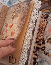 Album Scrapbooking vintage cucito a mano con applicazione di merletti, pizzi, charms e cartoncini a tema