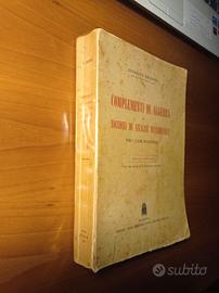 Vendo Complementi di algebra e Nozioni di analisi matematica per i Licei scientifici, di Giuseppe Zwirner, ordinario di Analisi matematica nell'Università di Padova, Edizioni Cedam, anno 1971, sesta edizione, 532 pagine. Volume importante in buone condizioni in relazione alla sua anzianità: nessuna mancanza, scritta, evidenziazione, sottolineatura. Presenta solo dei segni per la spunta degli esercizi e alcune pagine con delle macchioline dovute all'azione del tempo.