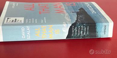 All that Man Is di David Szalay. Romanzo acclamato dalla critica, vincitore di diversi premi letterari importanti. Penguin Vintage, 2017 441 pagine Paperback Dimensioni: 12,7 x 2,7 x 19,6 cm Lingua Inglese Riconoscimenti del Libro * Finalista Man Booker Prize 2016 * Vincitore Plimpton Prize for Fiction 2016 (The Paris Review) * Vincitore Gordon Burn Prize 2016