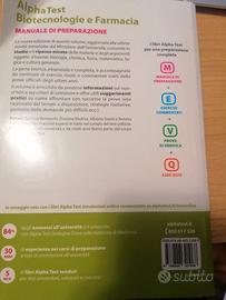 ALPHA TEST Biotecnologie e farmacia, MANUALE DI PREPARAZIONE, per l'accesso a BIOTECNOLOGIE, FARMACIA, CTF, CHIMICA, BIOLOGIA, AGRARIA. Ottime condizioni