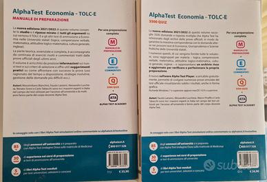 Vendo Alpha test Economia TOLC-E teoria ed esercizi. Libri usati pochissimo. Condizioni ottime con nessun segno all'interno