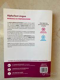 Vendo manuale di preparazione Alpha test per l'ammissione al corso universitario Lingue e Mediazione Linguistica; completo di esercizi. Nuovo, mai usato. Disponibile spedizione privata o con metodo tutto subito.