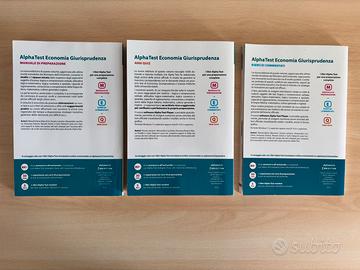 Kit completo di 3 volumi Alpha Test (3ª Edizione) per la preparazione ai test di ammissione delle facoltà di Economia, Giurisprudenza e Scienze Politiche (incluso TOLC-E e test Università Cattolica). Il set comprende: 1. Manuale di preparazione (teoria essenziale). ISBN: 978-88-483-2018-4 2. Esercizi commentati (per mettere in pratica la teoria). ISBN: 978-88-483-2012-2 3. 4000 Quiz (per simulare il test ufficiale). ISBN: 978-88-483-2011-5 Esternamente i libri si presentano in ottime condizioni, senza pieghe evidenti sulle copertine.