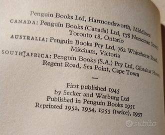 ANIMAL FARM di George Orwell, prima edizione tascabile Penguin Books, sesta ristampa del 1957 in condizioni accettabili. Segni del tempo, soprattutto nella parte alta delle pagine presente ingiallimento. Copia comunque perfettamente leggibile. Sto vendendo altri libri vintage!