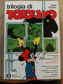 note: tre classiche storie dell'epoca d'oro, a cura di Mario Gentilini: Topolino e la Banda dei Piombatori, Topolino e il mistero di Macchia Nera, Topolino all'età della pietra - I ristampa Oscar Mondadori gennaio 1975