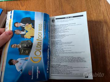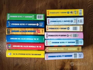 Vendo gli annuari del calcio mondiale dalla stagione 1994-95 a quella 2006-07. Le condizioni esterne dei volumi e i relativi difetti si possono vedere dalle foto, mentre internamente non ci sono scritte, ma segnalo solo una pagina staccata come da foto nel volume 98-99.