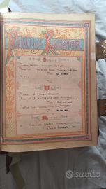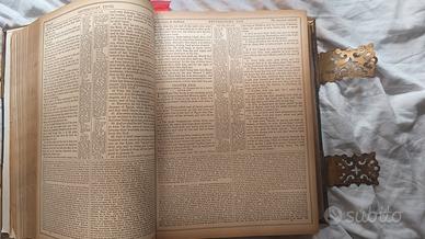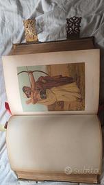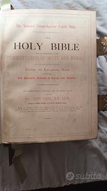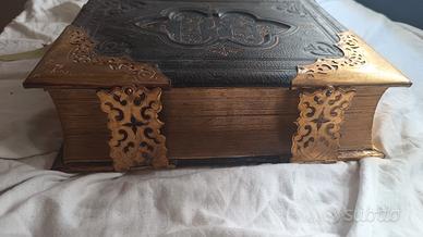 Vendo splendida Bibbia antica inglese di fine Ottocento/inizi Novecento, autentica Family Bible vittoriana, arricchita da tavole illustrate a colori, fregi decorativi e una pagina genealogica originale compilata a mano da una famiglia inglese dell’epoca.