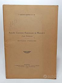 P. GIACINTO BURRONI O. F. M. ANTICHI CONVENTI FRANCESCANI IN MONCALVO (CASALE MONFERRATO) - NOTIZIE STORICHE R. DEPUTAZIONE SUBALPINA DI STORIA PATRIA - SEZ. DI ALESSANDRIA, ALESSANDRIA, 1941 Estratto dalla RIVISTA DI STORIA - ARTE - ARCHEOLOGIA Bollettino della sezione di Alessandria della R. Deputazione Subalpina di Storia Patria diretta da Mario Viora Annata L, Quaderni I-II, Gennaio-Giugno 1941-XIX In 8° (25x17 cm.), pp. 56, brossura editoriale,. Copertina e fogli leggermente bruniti dal tempo. Ottime condizioni. Euro 20,00 + s.s. LIBRO RARO ANTICHI CONVENTI FRANCESCANI STORIA LOCALE MONCALVO CASALE MONFERRATO #robertolibri 834