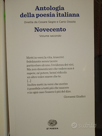 Vendo volumi I e II dell'Antologia della poesia italiana - Novecento curata da Segre e Ossola. È nuovo ed intonso.