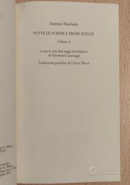Il «Meridiano» presenta, col testo spagnolo a fronte, l’intera opera poetica di Machado nella storica traduzione di Oreste Macrì, poeta ermetico e raffinato filologo che molta parte della propria attività ha dedicato proprio allo studio di Machado.
