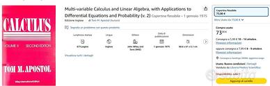 Tom M. Apostol Calculus volume 2 second edition 1 gennaio 1975 .