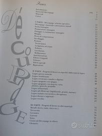 Arte e tecnica del decoupage. Il découpage in cui una superficie viene decorata con carta ritagliata, incollata e successivamente verniciata è una tecnica decorativa antica, ed in questo libro viene esposta in modo chiaro e dettagliato in tutti i suoi passaggi e con tutti gli accorgimenti necessari per ottenere un buon lavoro. Gli oggetti realizzati sono presentati in tutte le fasi di lavorazione ed alcuni sono corredati di sequenze fotografiche.