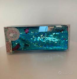 Vendo elegante astuccio con paillettes reversibili effetto brillante, nuovo e mai utilizzato, completo di confezione originale. Colore cangiante azzurro/verde con dettagli rosa. Personalizzato con nome “Angela”, ideale anche come regalo. ✔ Zip resistente ✔ Ottima capienza ✔ Design originale e luminoso Disponibile per consegna a mano o spedizione.