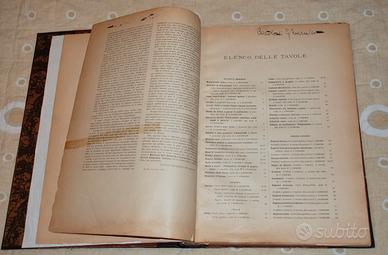 Condizioni: Leggeri segni di usura sulla copertina rigida, segni di ingiallimento pagine, pagina iniziale di presentazione riparata con un pezzetto di nastro adesivo trasparente, autografo del precedente proprietario in alto nella pagina di "Elenco delle Tavole". In 3 pagine sono presenti piccole annotazioni scritte a matita a mano a bordo pagina.