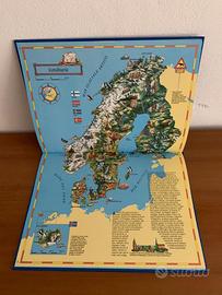 il libro si presenta in ottime condizioni 15 tavole a colori corredate di testi che forniscono ai bambini le informazioni più interessanti sulle caratteristiche geografiche e culturali di paesi e continenti, mentre illustrazioni dettagliate mostrano paesaggi edifici e personaggi più famosi dei vari luoghi descritti. Età di lettura: da 7 anni.